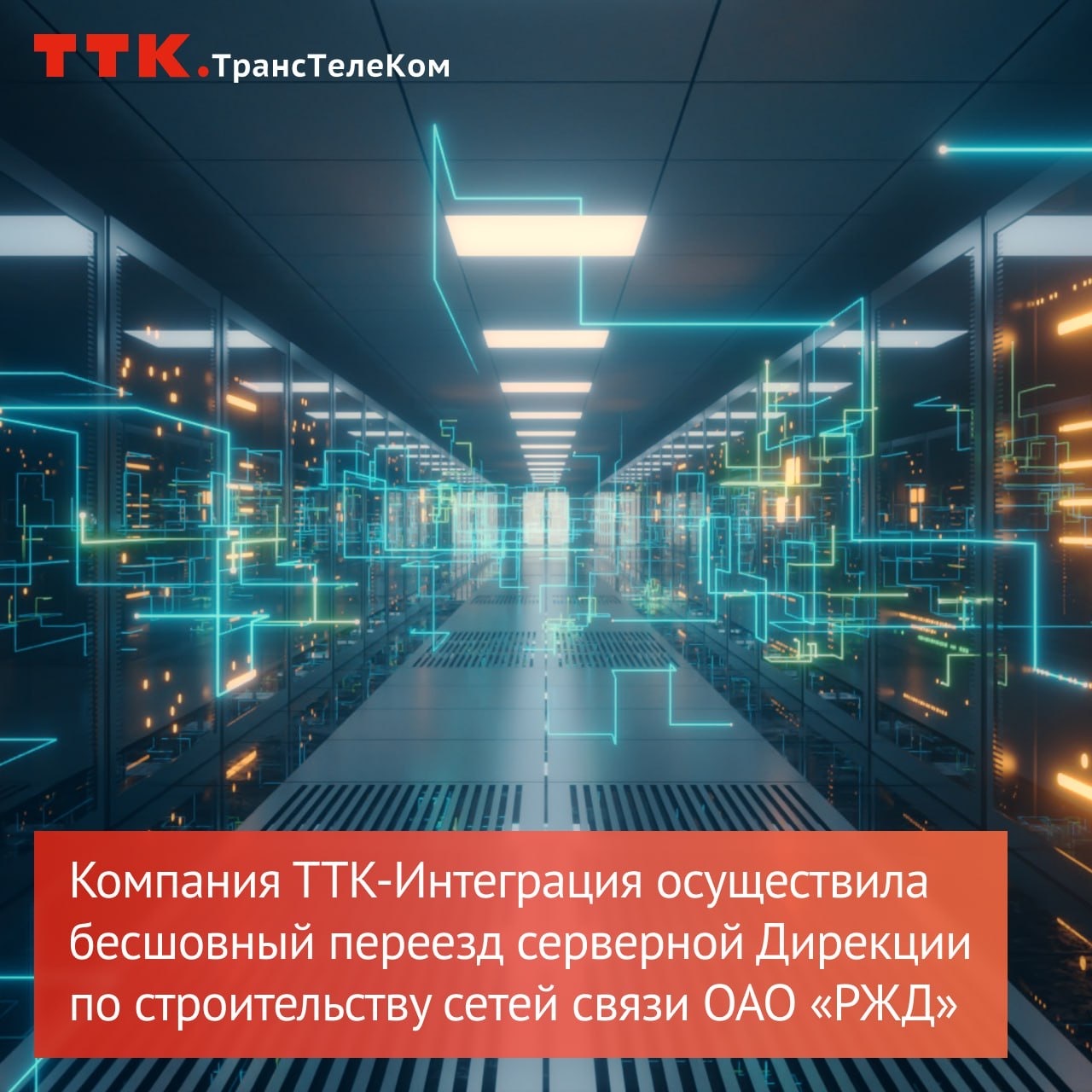 ООО «ТТК-Интеграция», дочерним обществом АО «Компания ТрансТелеКом», организован переезд оборудования серверного помещения Дирекции по строительству сетей связи – филиала ОАО «РЖД» (ДКСС) на новый адрес.
