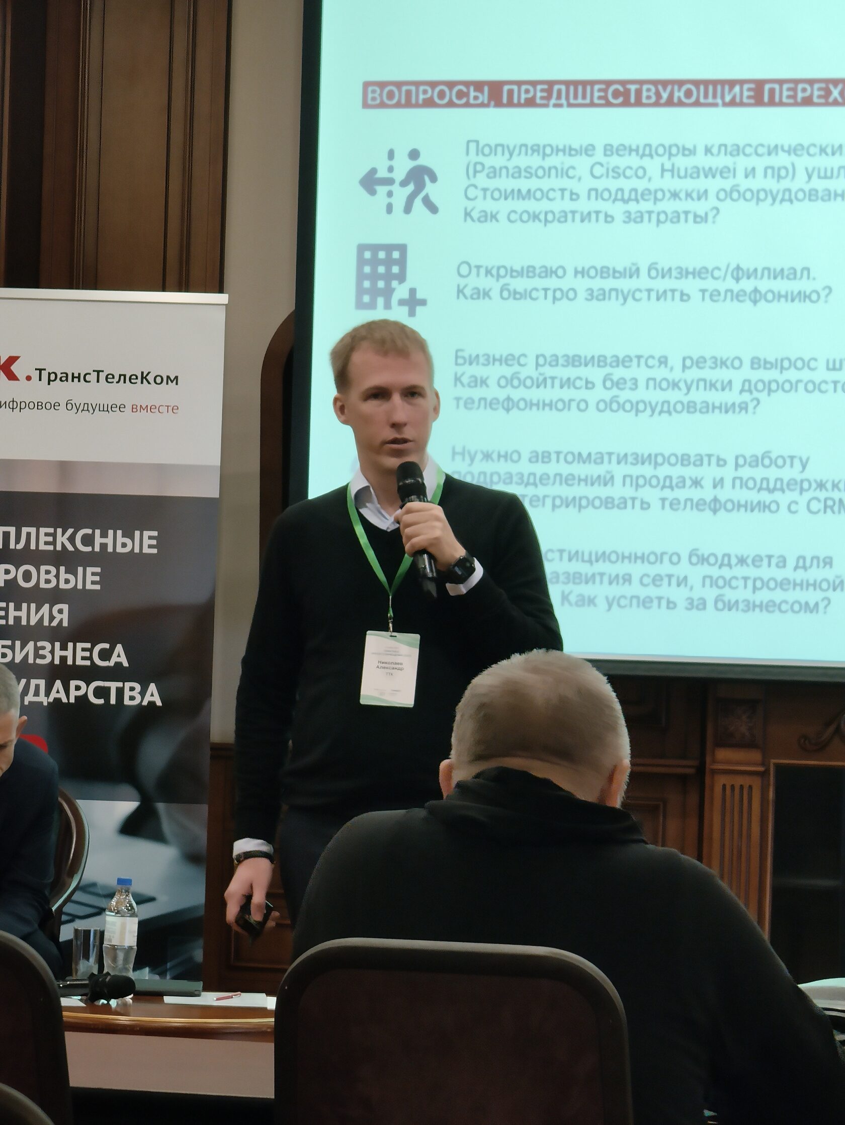 В ходе деловой программы Александр Николаев, начальник отдела маркетинга Компании ТрансТелеКом, выступил с докладом на тему «Может ли импортозамещение инфраструктуры привести к росту выручки?». В рамках выступления Александр Николаев рассказал о различных продуктах, уделив особое внимание виртуальной АТС, корпоративному Wi-Fi (или Wi-Fi с авторизацией), технологии построения корпоративных сетей SD-WAN, семейству продуктов информационной и сетевой безопасности (анти-DDoS, Web Application Firewall, межсетевой экран и система обнаружения вторжений и т.д.) и одному из относительно новых продуктов в портфеле компании – видеонаблюдению с интеллектуальной видеоаналитикой.